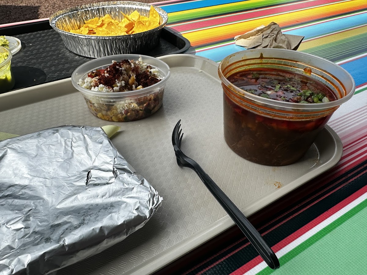 Shrimp burrito was very good and not at all wet or greasy. Salad was little on the bland side but had a nice amount of avocado in there. They had a cute outdoor picnic bench area. Would come back again!